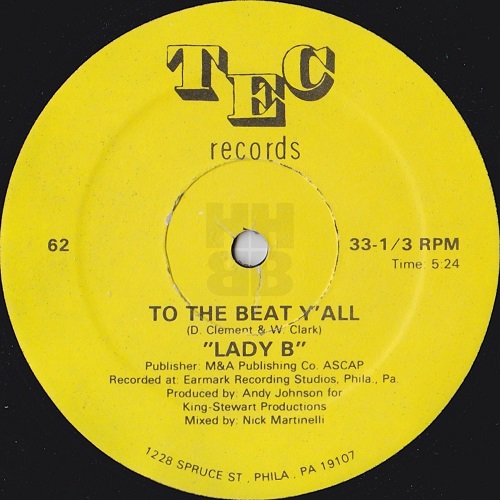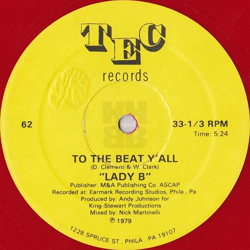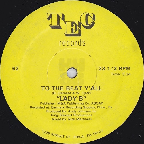 While freestyling at Kim Graves in Philadelphia, she was overheard by radio personality, Dr. Perri Johnson, who persuaded her to record a track. She recorded To The Beat Y’All for TEC Records in 1979 utilizing the music from Direct Current’s ‘Everybody Here Must Party’, released on the same label earlier that year. The single was well received but due to record label issues nothing followed.