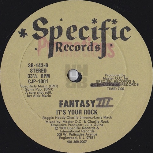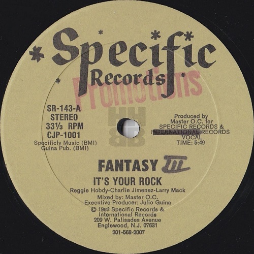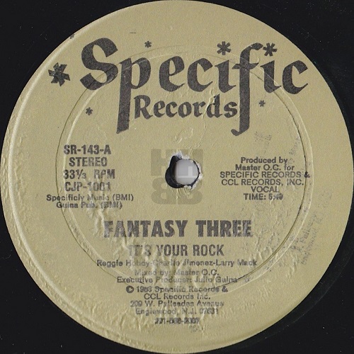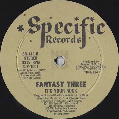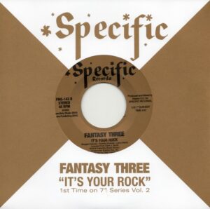 The break came when they joined forces with Julio Guina aka Chico, who was friends with Larry and Charlie. He invested money in the group and negotiated a deal with Specific Records to release the now classic, It’s Your Rock. There are a few label variations pictured below, the most significant of which is the first pressing, which has the originally intended artist name of simply Fantasy. The Three was added due to an artist with the same name releasing music at the same time. It was also pressed in 2019 for the first time on 7″ vinyl by Fraternity Music Group.