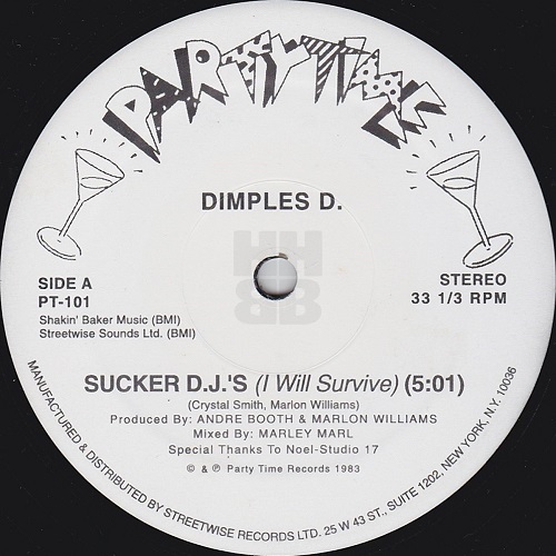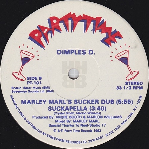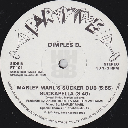 Queensbridge native, Dimples D (Crystal Smith), debuted in 1983 with Sucker DJ’s, produced and mixed by her then-boyfriend, Marley Marl (Marlon Williams). The track was a response to Run DMC’s Sucker MCs and although the track received little response upon release and Dimples D recorded no other solo singles, it marked the beginning of a hugely successful career for Marley. Many of the vocals would be used as sample fodder for future productions.