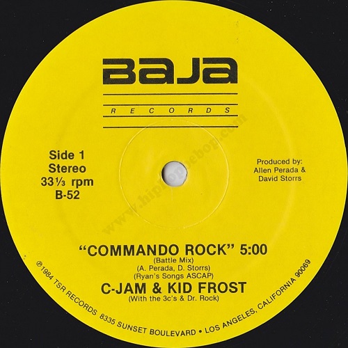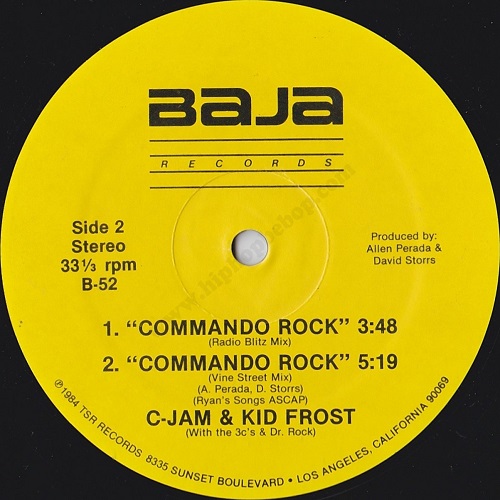 Another classic West Coast electro track, this time courtesy of C-Jam and Kid Frost featuring Dr. Rock, formerly a DJ for the World Class Wreckin Cru before they ventured into recording, and The 3 C’s(Fast Boys). The production is by David Storrs(The Alien Wizard) and Allen Perada (Lefty), who also provides the vocoder and turntable skills.