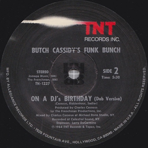 This is the one and only release by Butch Cassidy’s Funk Bunch (Aaron Allen, Stephi C & Debbie Williams) and was written and produced by Charles Casseus, Chuck D (Carlton Ridenhour) and Eric ‘Vietnam’ Sadler. Charles Casseus also provided vocals and was a member of Key-Matic [Breakin’ In Space, Jazz Up & Hip Hop].